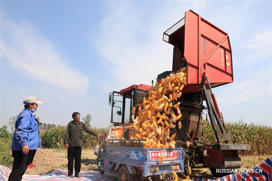 В Аньхое, Шаньдуне и других провинциях Китая в эти осенние дни продолжается уборка урожая кукурузы. Фотографии Синьхуа