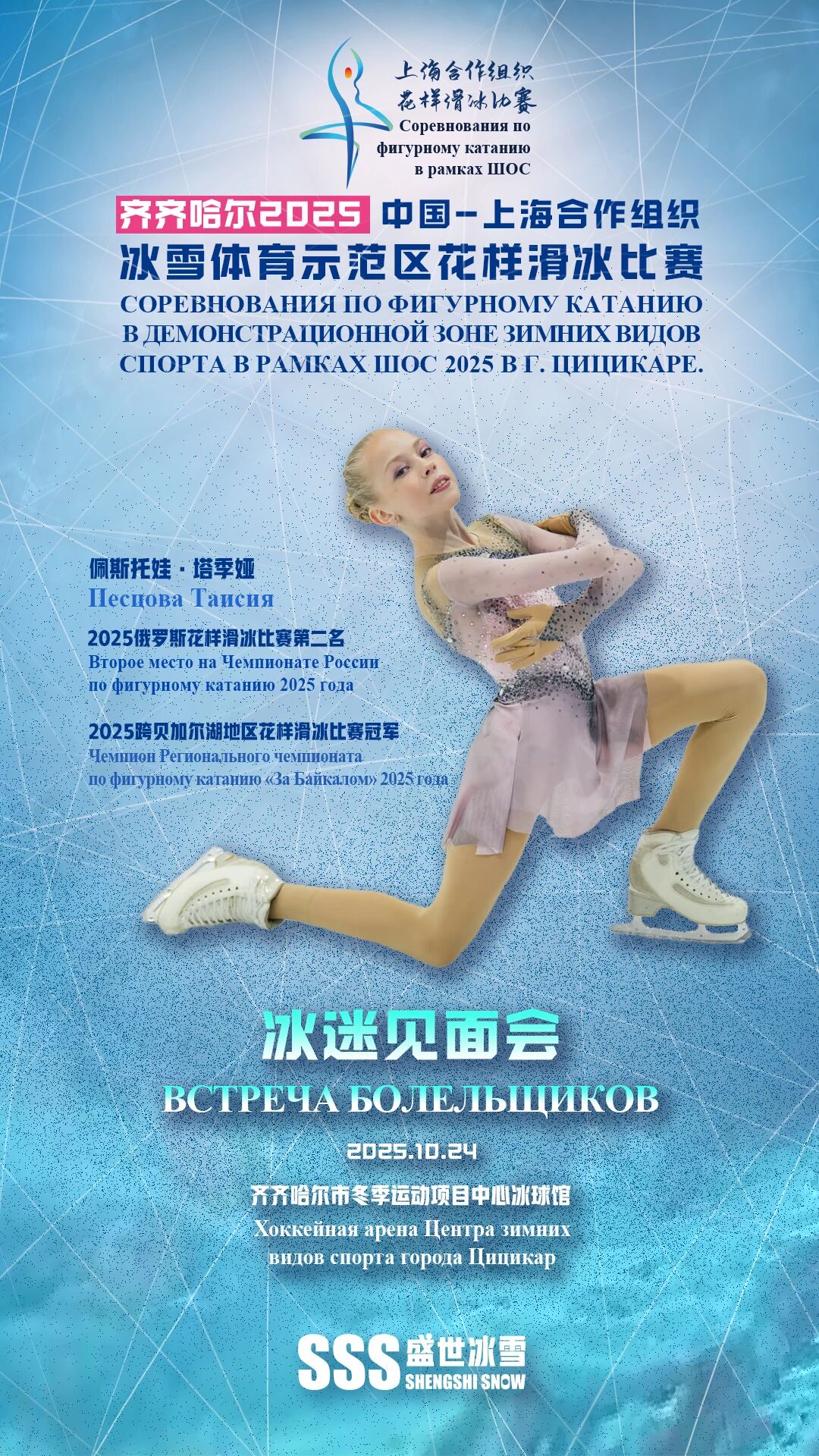 25 октября 2025 года в Центре зимних видов спорта города Цицикар состоялись соревнования по фигурному катанию в демонстрационной зоне зимних видов спорта в рамках ШОС 2025.