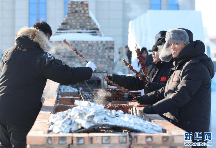 23 декабря 2025 года, туристы кушают шашлыки в турзоне на территории КПП Хэйшаньтоу. /Фото: Синьхуанет/