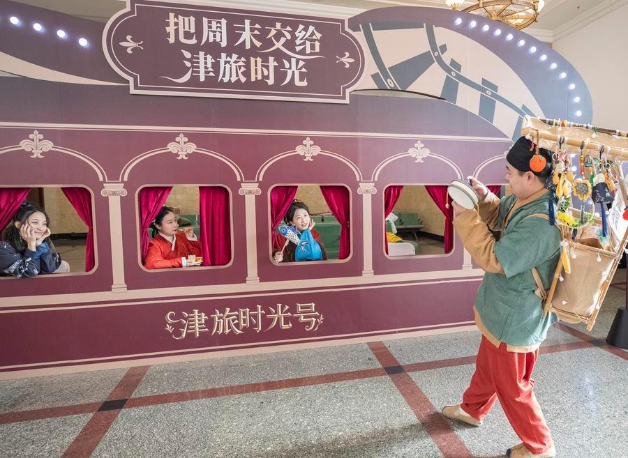 1 января 2026 года, туристы позируют с рекламным щитом на железнодорожном вокзале в Пекине. /Фото: Синьхуа/