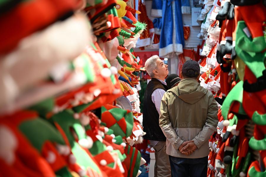 17 декабря 2025 года, бизнесмены из Кувейта выбирают рождественские товары в Международном рынке Иу. /Фото: Синьхуа/